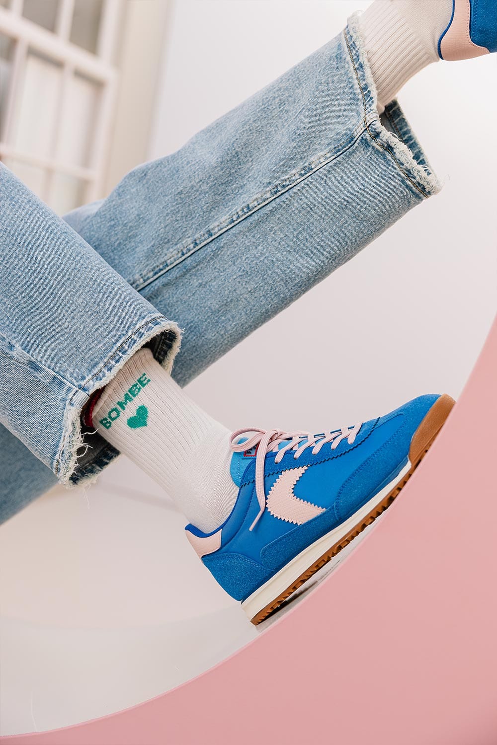 Deze blauwe sneakers met roze detail zijn de perfecte mix van comfort en stijl.