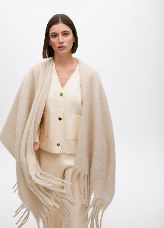 Gemaakt van een heerlijk zachte stof en afgewerkt met speelse franjes, draag je hem moeiteloos over je outfit voor een cosy, maar geklede look.
