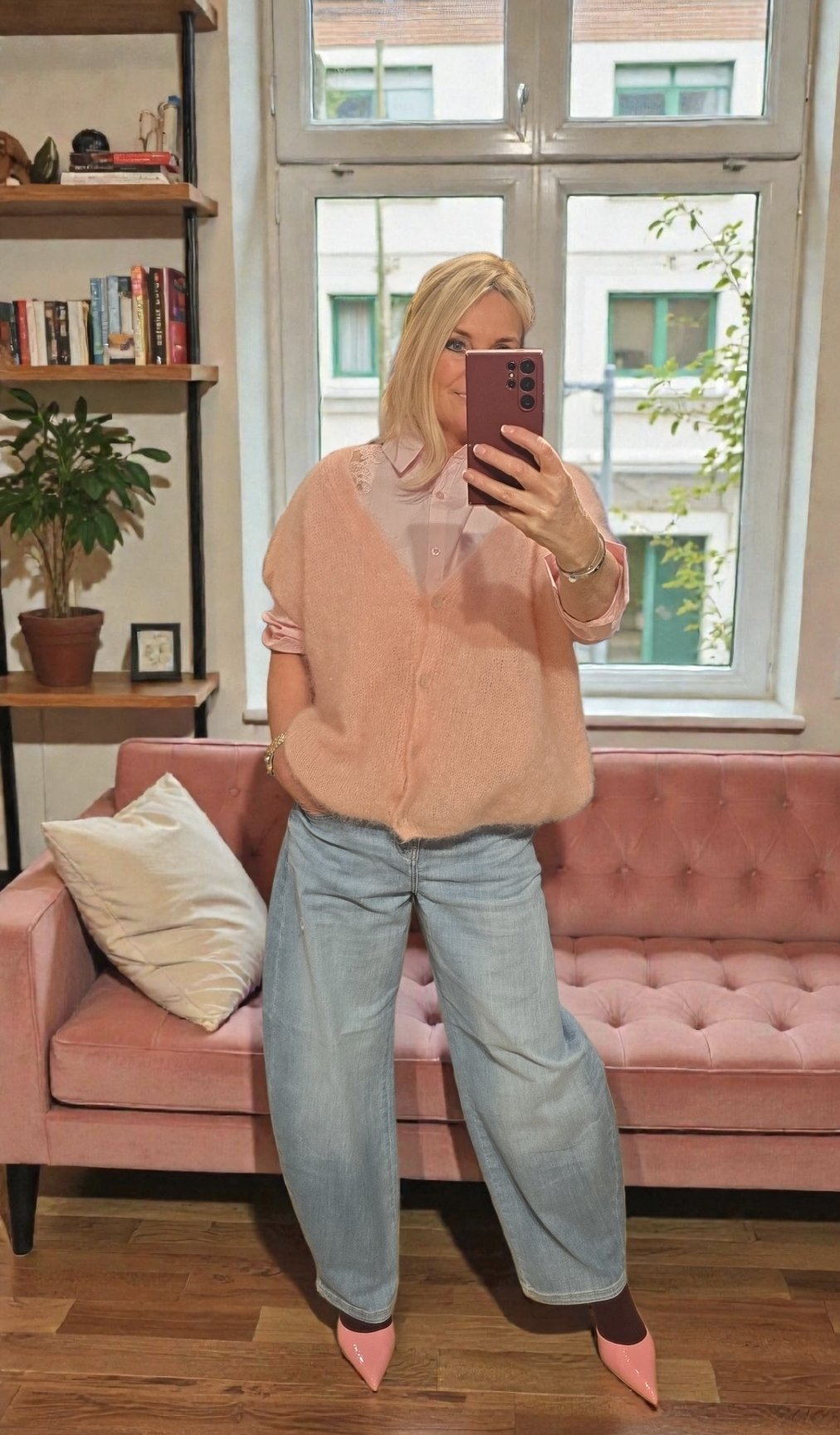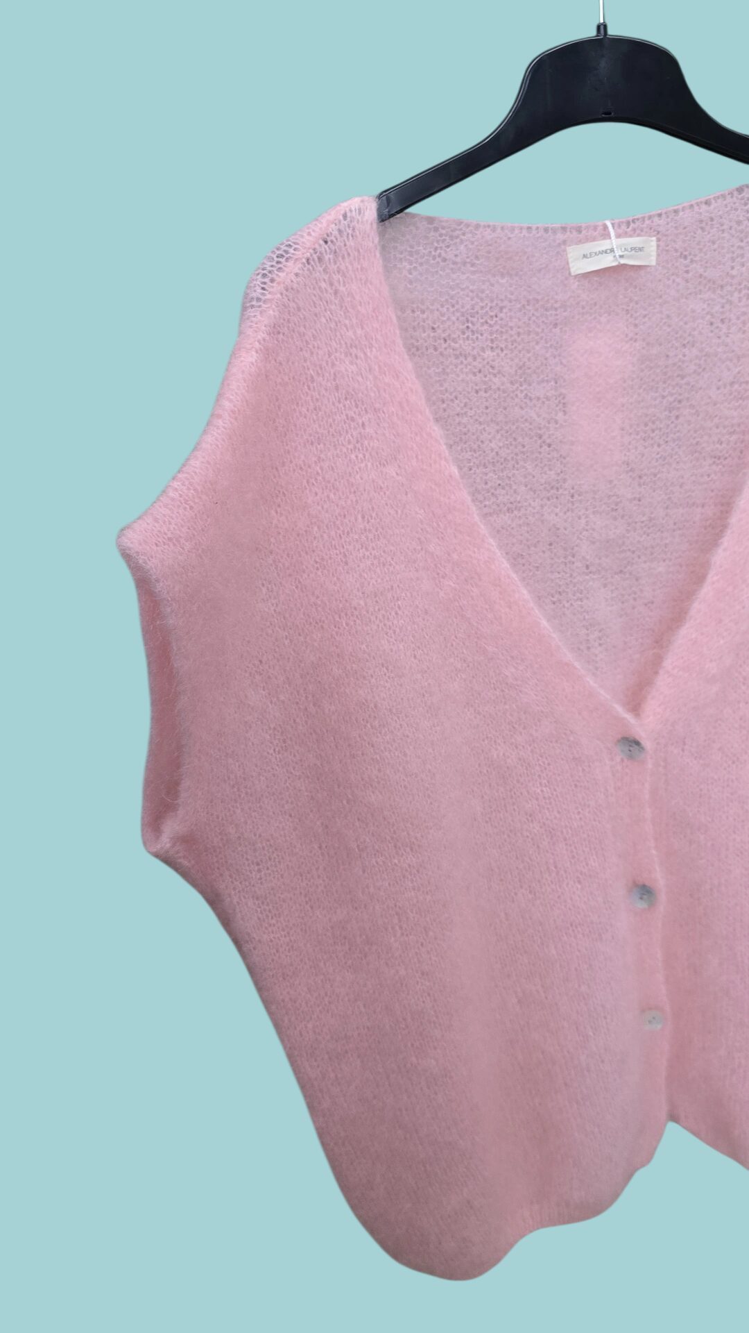 Deze zachte en luchtige vest is gemaakt van hoogwaardige materialen die zorgen voor een comfortabele en warme pasvorm. Het heeft een v-hals en een knoopsluiting met mooie, glanzende knopen, waardoor het perfect is voor zowel casual als meer geklede gelegenheden.